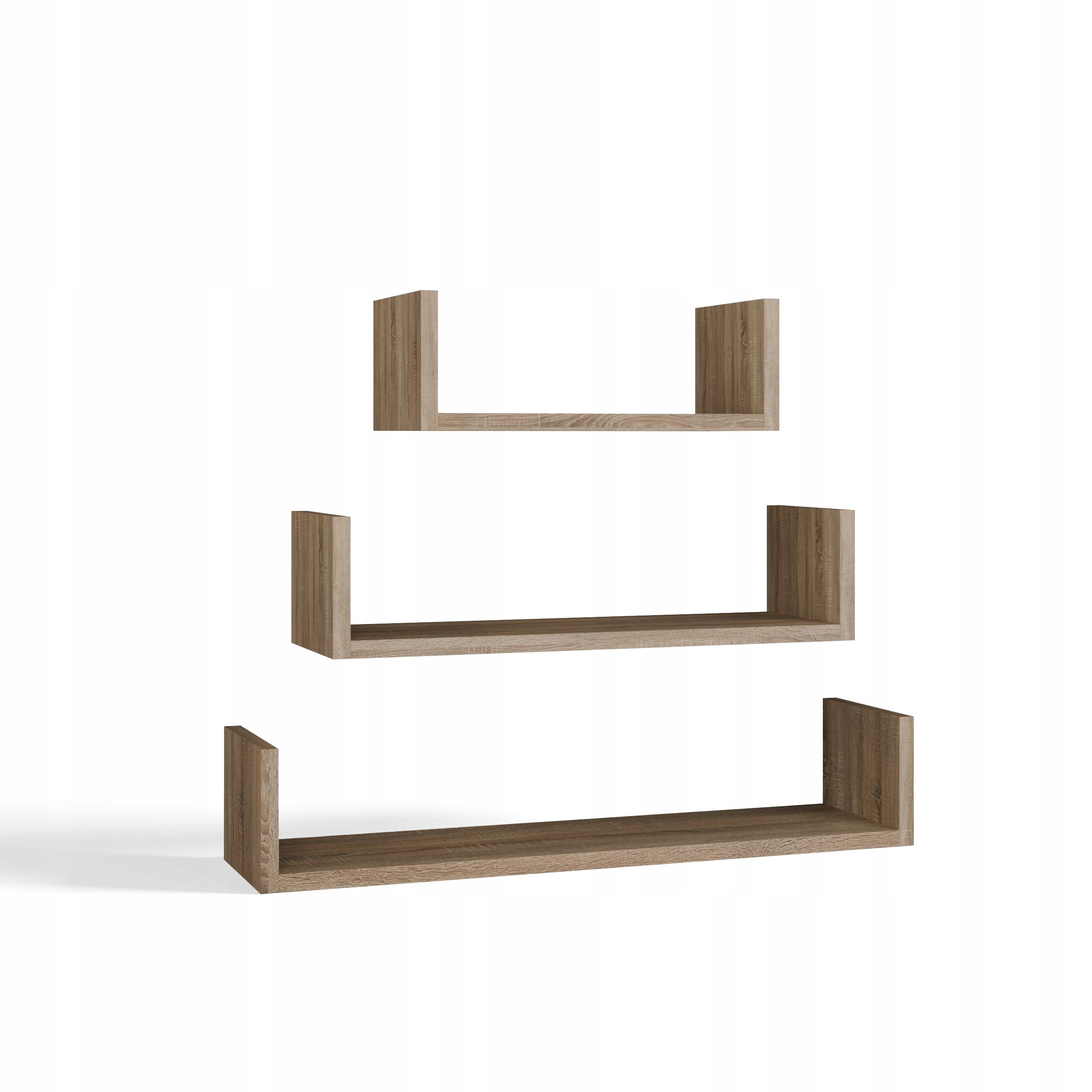 НАБОР 3x ПОДВЕСНЫХ ПОЛОК MOBI 3P – СОВРЕМЕННЫЕ НАСТЕННЫЕ ПОЛКИ, ДУБ СОНОМА