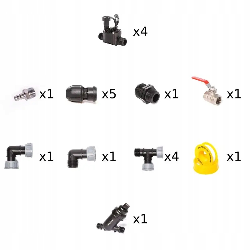 Набор, который включает в себя 4 клапаны соленоидного соленоида дождевой птицы, фильтр, соединители компрессоров и трубные разъемы. Набор предназначен для самообеспечения, в соответствии с прикрепленной схемой сборки, видимой на фотографии