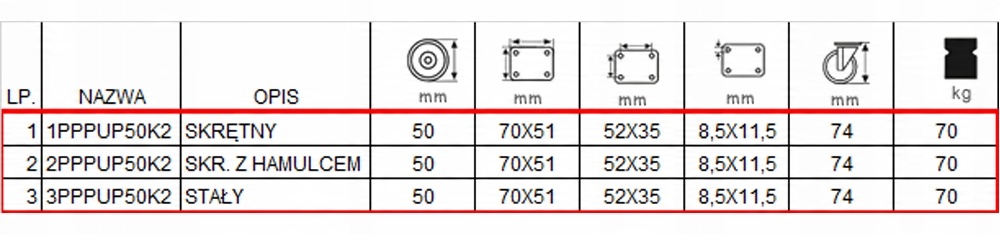 В комплект входят два комплекта, смонтированные на пластине с кодом 3PPPUP50K2 > в таблице под п. 3, один комплект с кодом тормоза 2PPPUP50K2 в таблице под п. 2 и один комплект без тормоза с кодом 1PPPUP50K2 в таблице под п. 1.