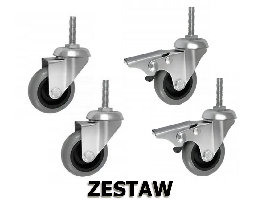 НАБОР ИЗ 4 ШТ. МЕБЕЛЬНЫЕ КОЛЕСА фи.50 мм в корпусе со штифтом *М8 и тормозом из пластика и полиуретана