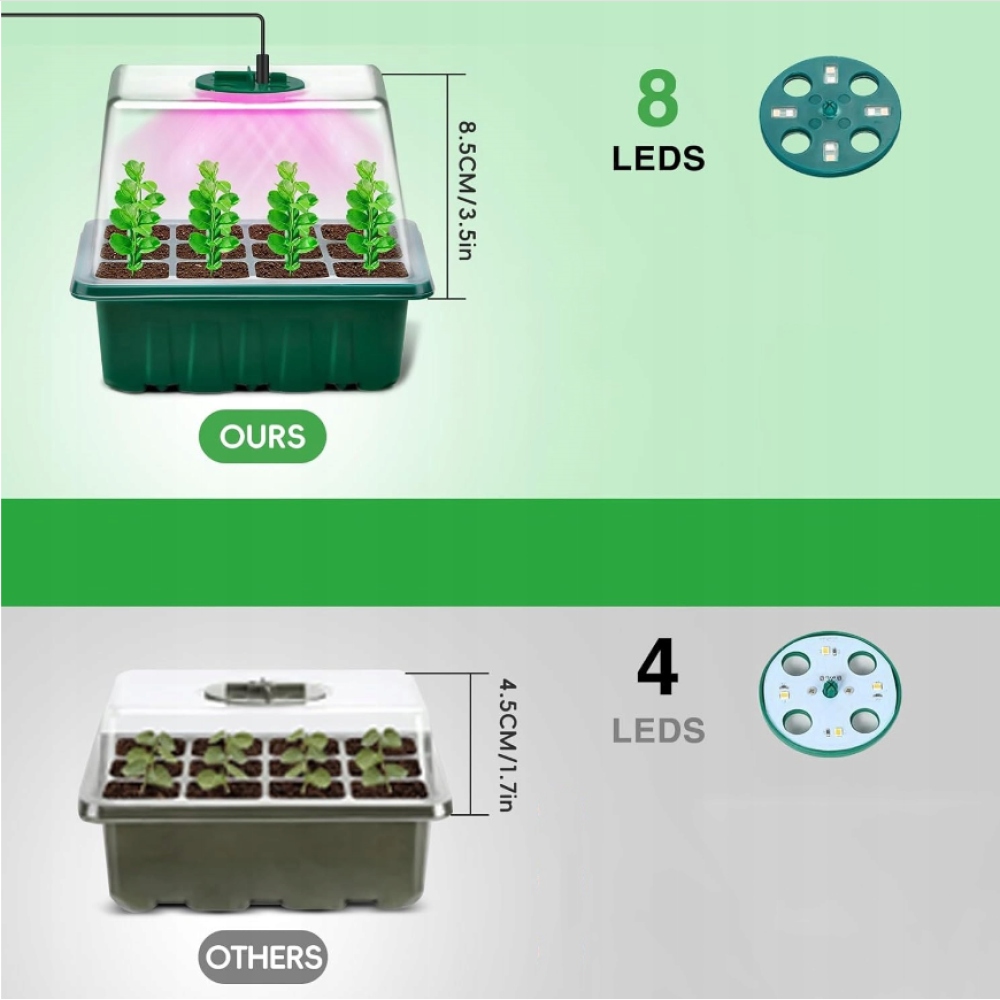 - Улучшенная приподнятая крышка: обеспечивает достаточно места для роста семян — даже когда растения начинают расти, это не ограничивает их развитие.