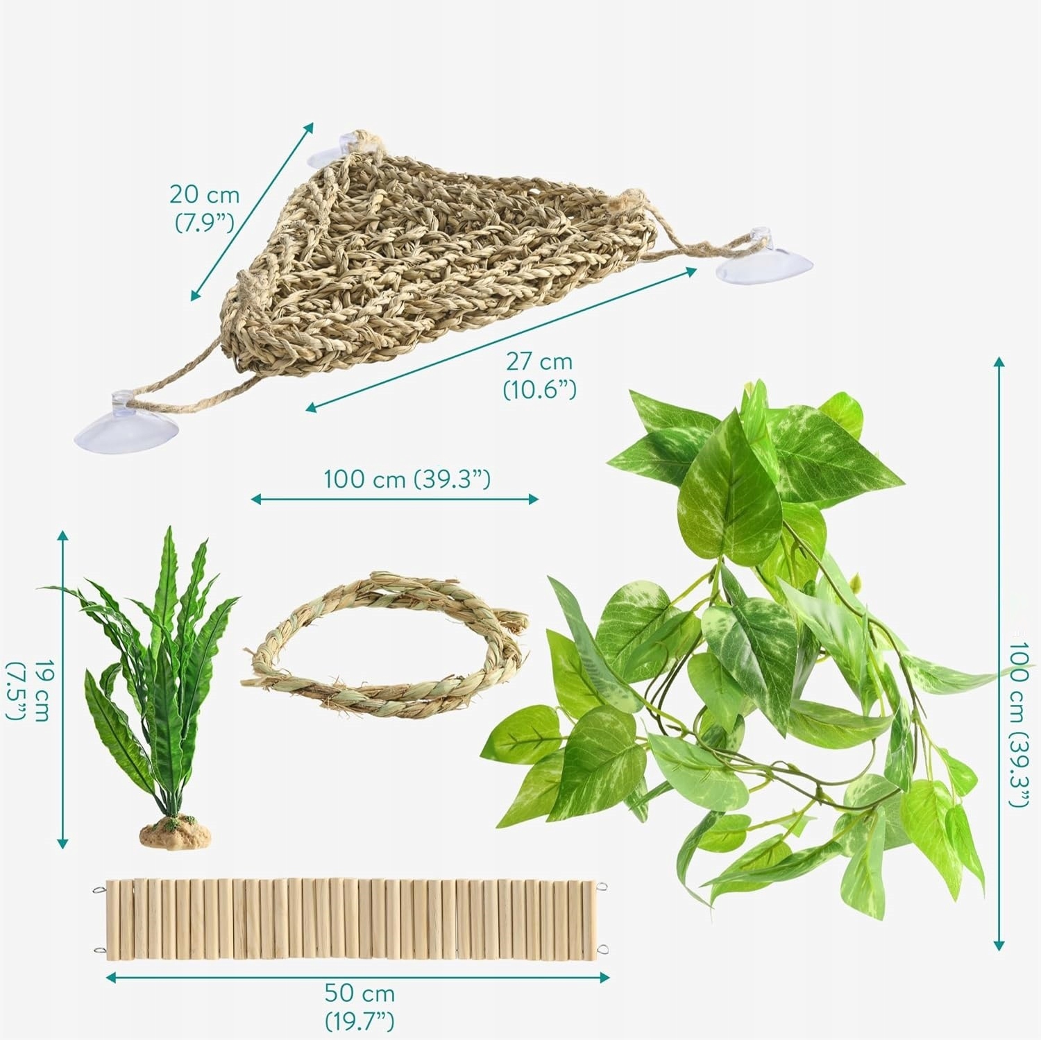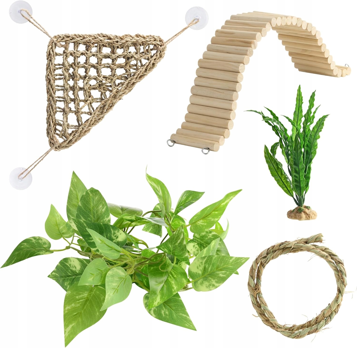 НАБІР 5X АКСЕСУАРІВ ДЛЯ ТЕРАРИУМУ РЕПТИЛІЙ ЗЕМНОВОДНИХ ГАМАК РОСЛИНИ МАЛИЙ МІСТ