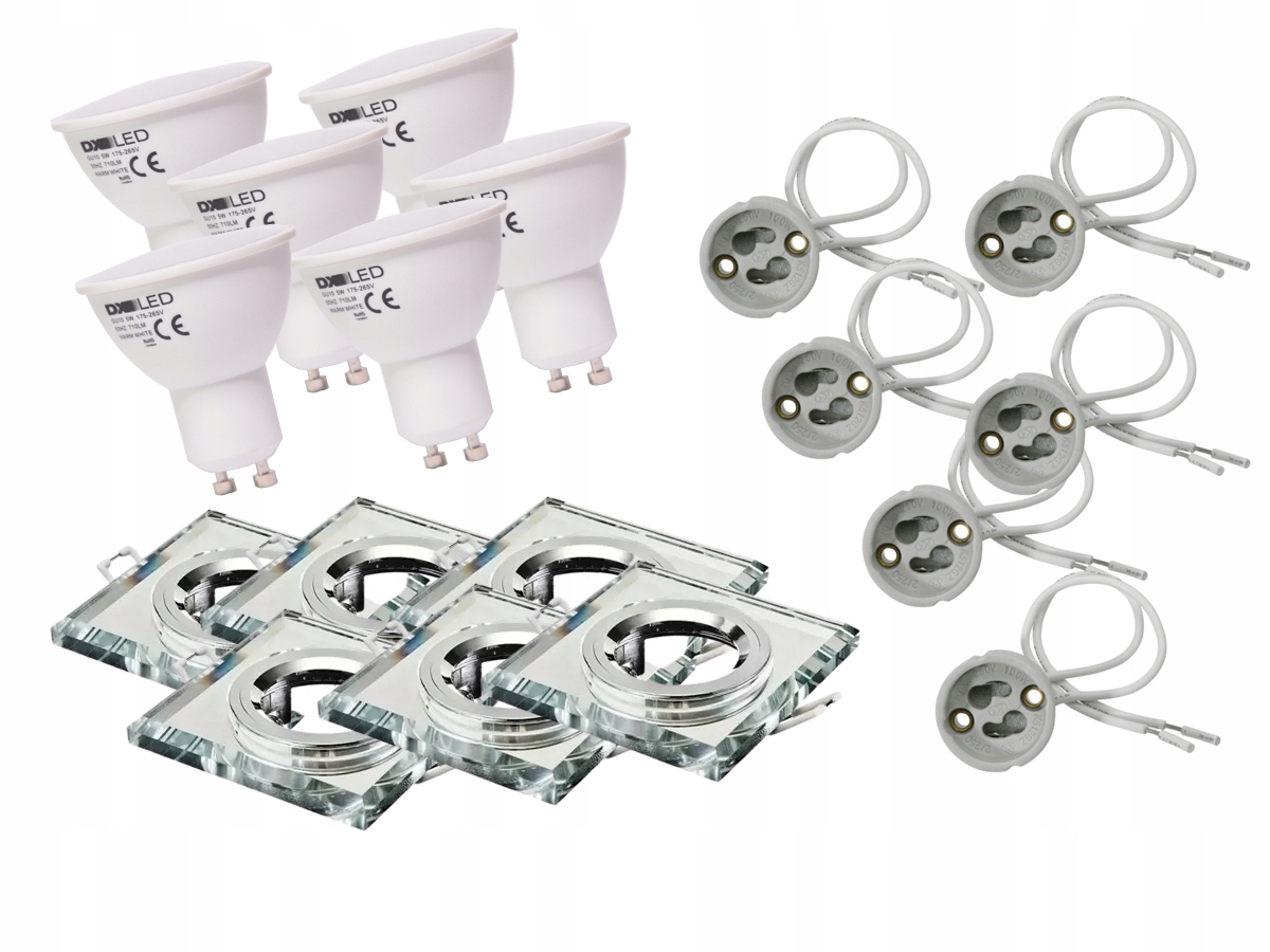 Набор из 6 стеклянных светильников + 6 розеток DXLed 5 Вт + 6 розеток GU10 Вт