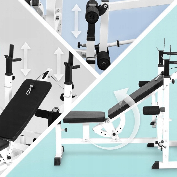 Чтобы еще больше расширить возможности и разнообразить тренировки, скамья оснащена возможностью жима и выполнения выпадов. Кроме того, вы можете регулировать сложность тренировки в зависимости от веса, помещенного на ручку.