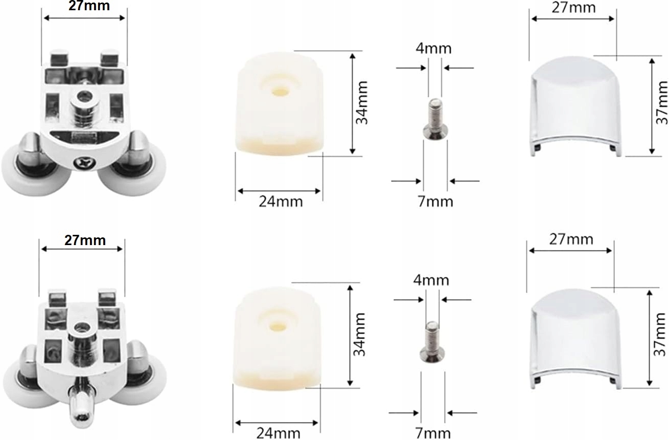 Набор из 8 роликов для душевой кабины ZE-04. Диаметр круга 25 мм. Подробные размеры на фотографиях.