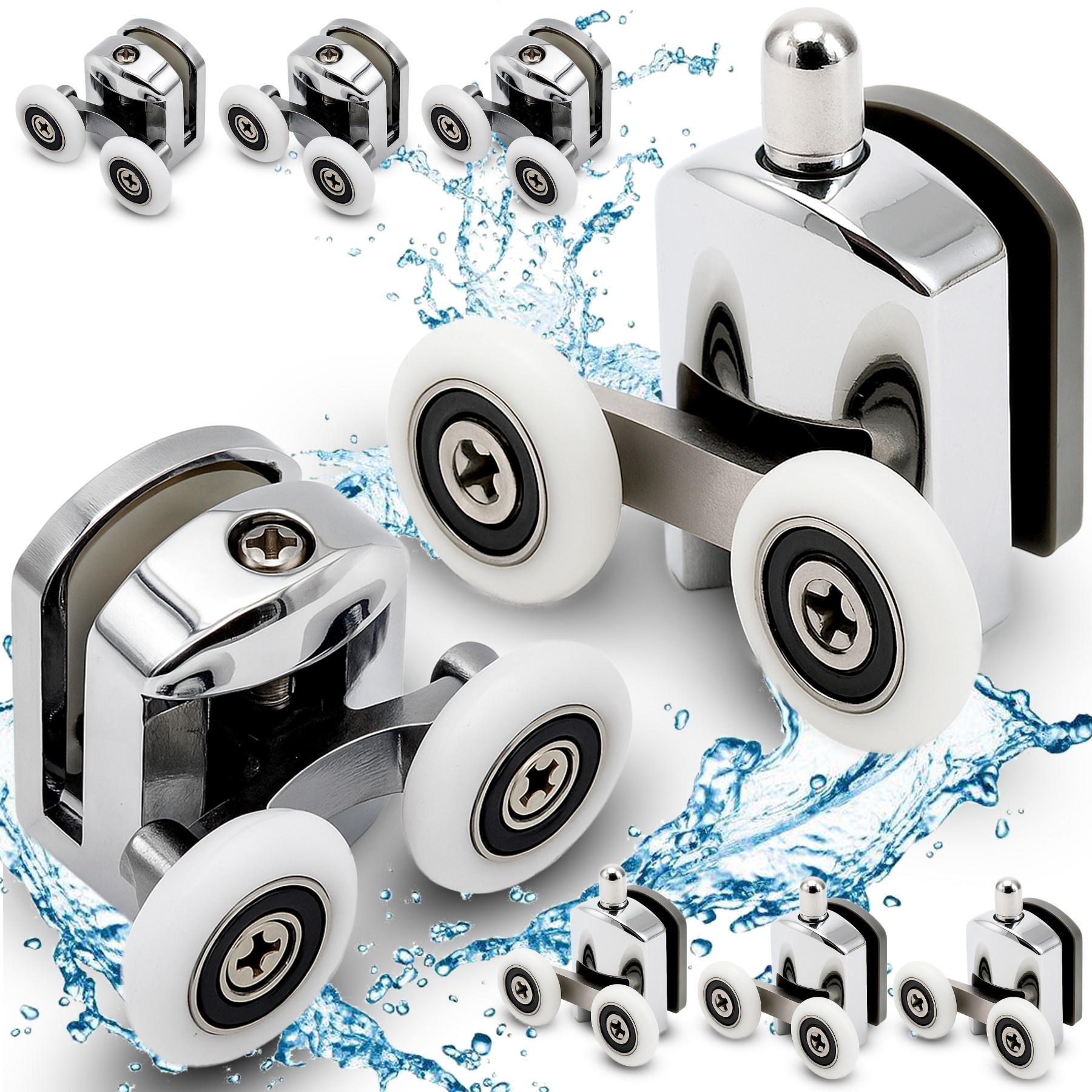 НАБОР ИЗ 8 РОЛИКОВ ДЛЯ ДУШЕВОЙ КАБИНЫ ВЕРХНИЕ/НИЖНИЕ КОЛЕСА ХРОМ
