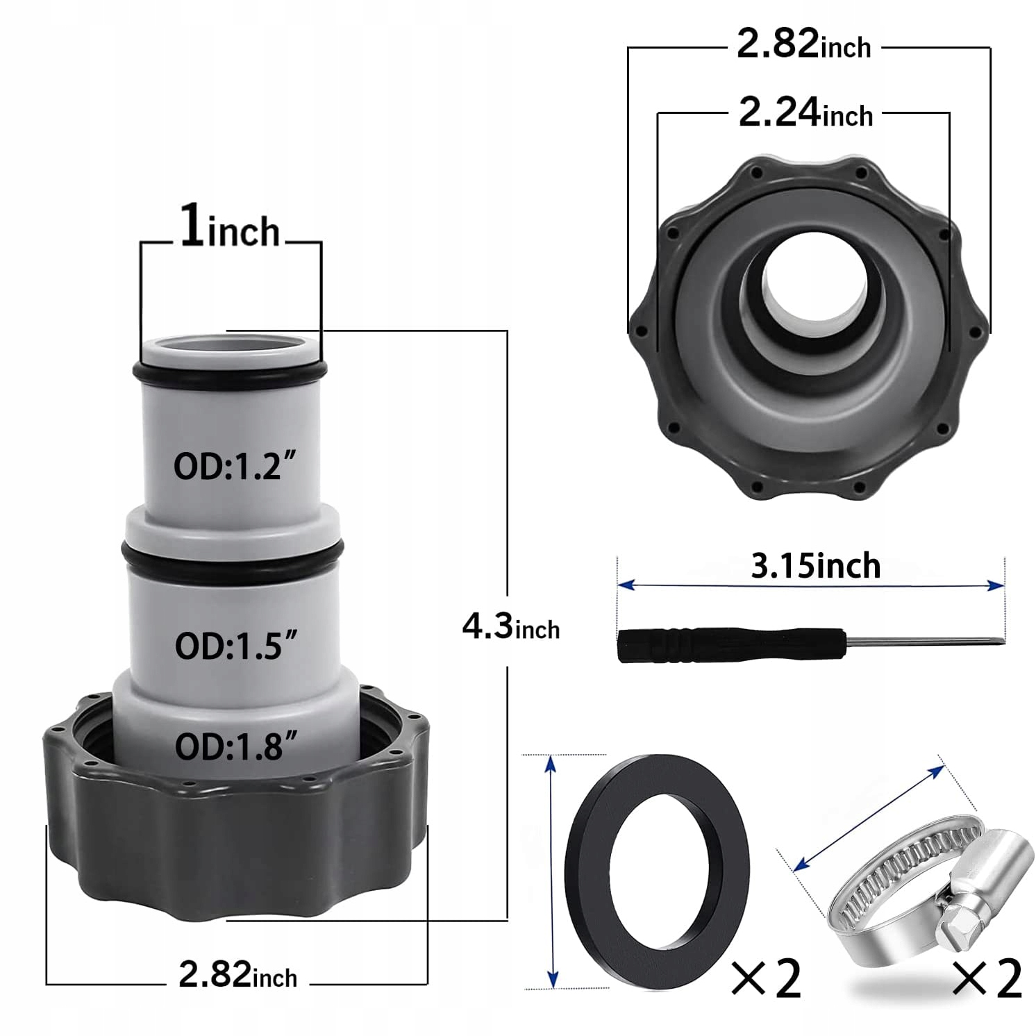 ⏩Маленький конец присоединяется к шлангу диаметром 1,25 дюйма. Конец с резьбой подключается к поршневому клапану диаметром 1,5 дюйма или фильтрующему насосу.