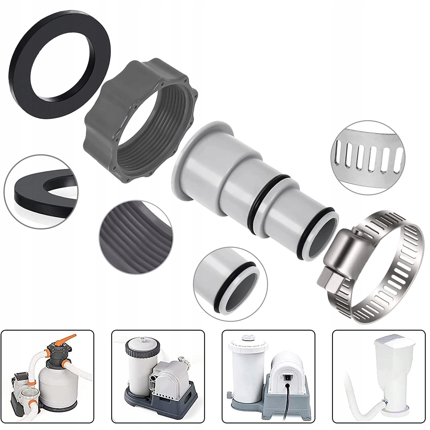 ⏩Изготовлен из устойчивого к коррозии пластика, прочного и долговечного. Резиновое кольцо плотно прилегает к шлангу, создавая герметичное пространство для предотвращения утечек воды, что идеально подходит для комплектов соединителей для бассейна.
