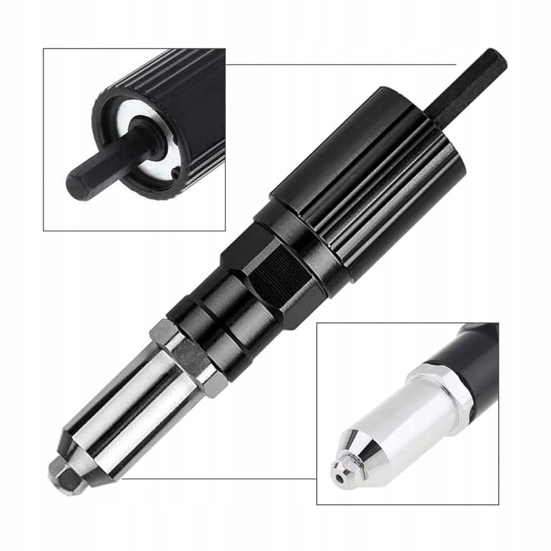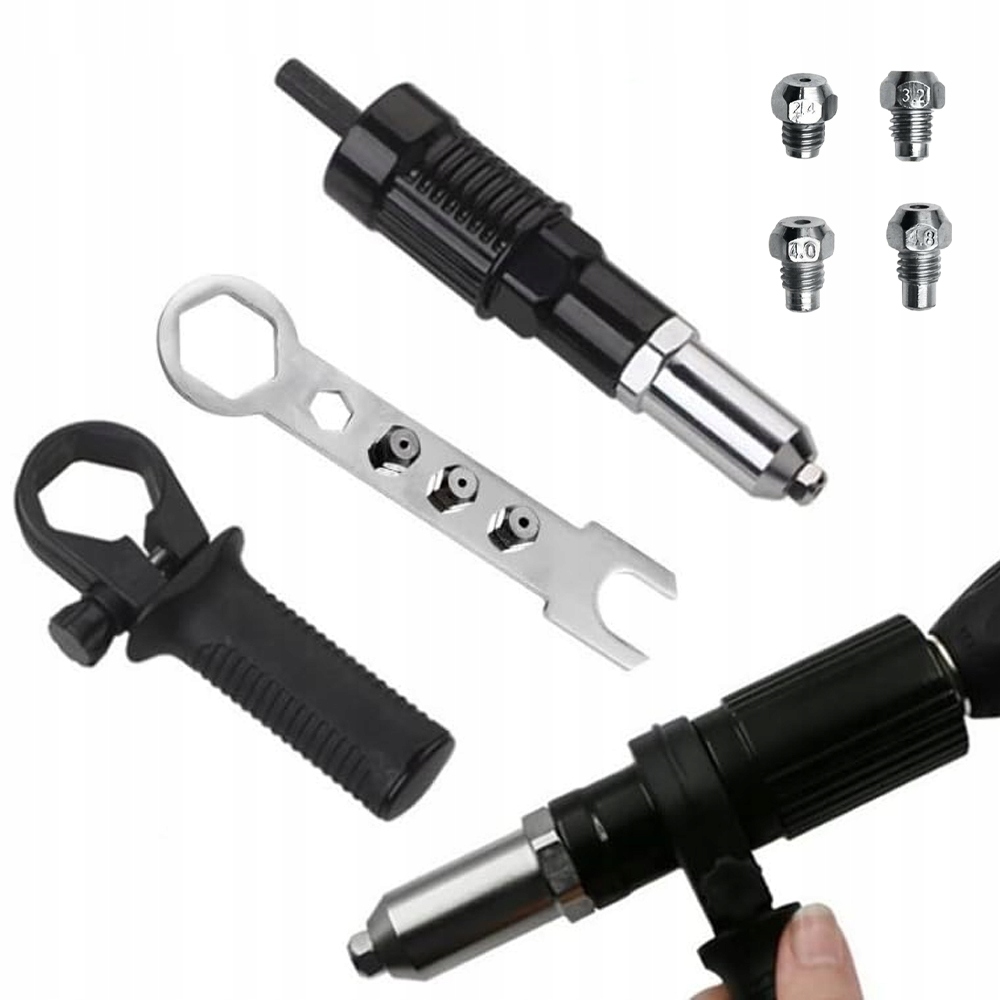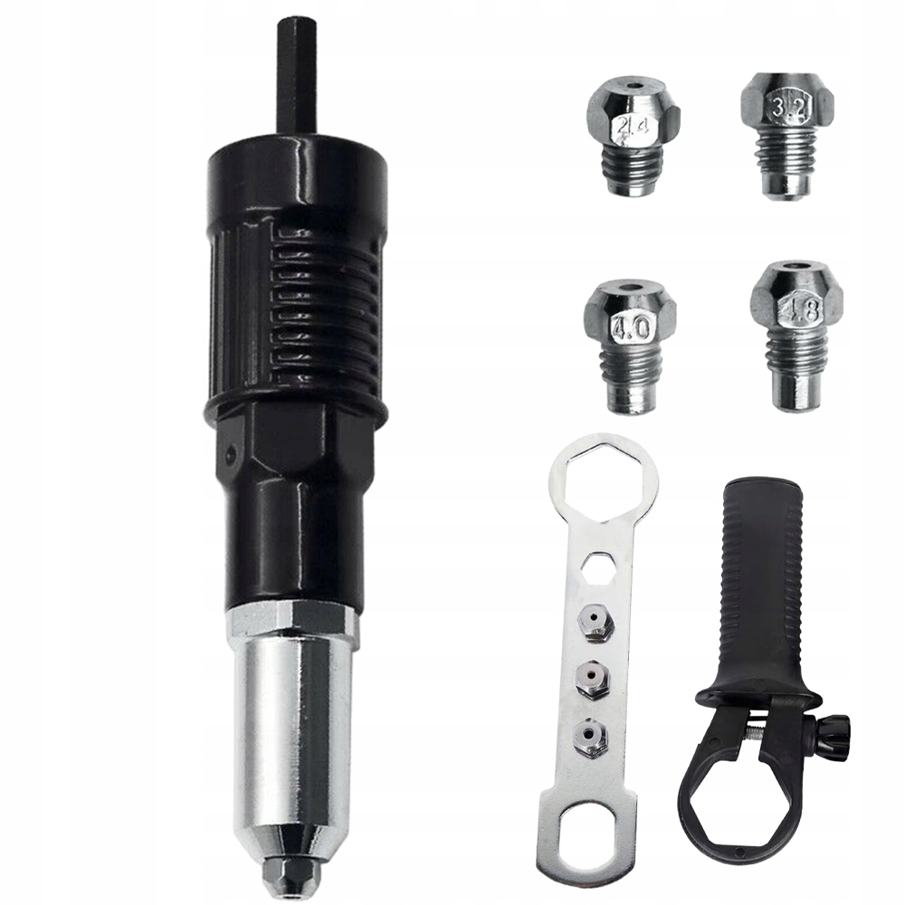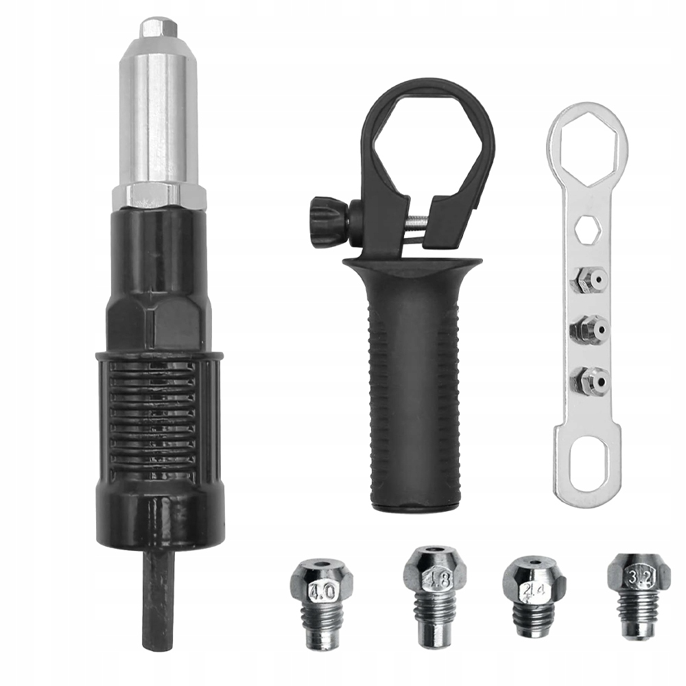 **Различные размеры гильз**: мы предлагаем четыре различных размера сопел: 2,4 / 3,2 / 4 / 4,8 мм, которые позволяют эффективно использовать их в самых разных проектах: от ремонта и модернизации автомобилей до крупных строительных площадок и мелкий ремонт дома. С помощью этого переходника-заклепки вы можете легко и точно соединять элементы без необходимости использования других инструментов.