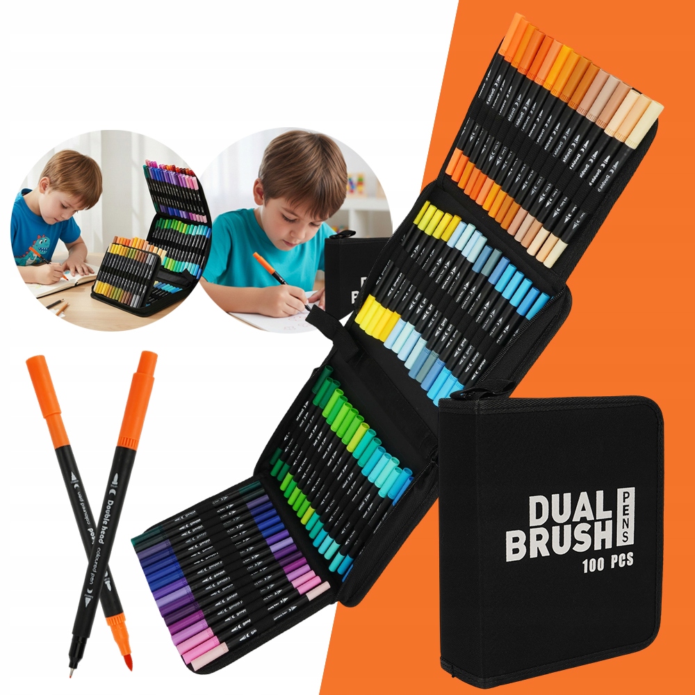 НАБОР АКРИЛОВЫХ МАРКЕРОВ, 100 ШТ., ДВУХСТОРОННИЕ РУЧКИ-КИСТОЧКИ