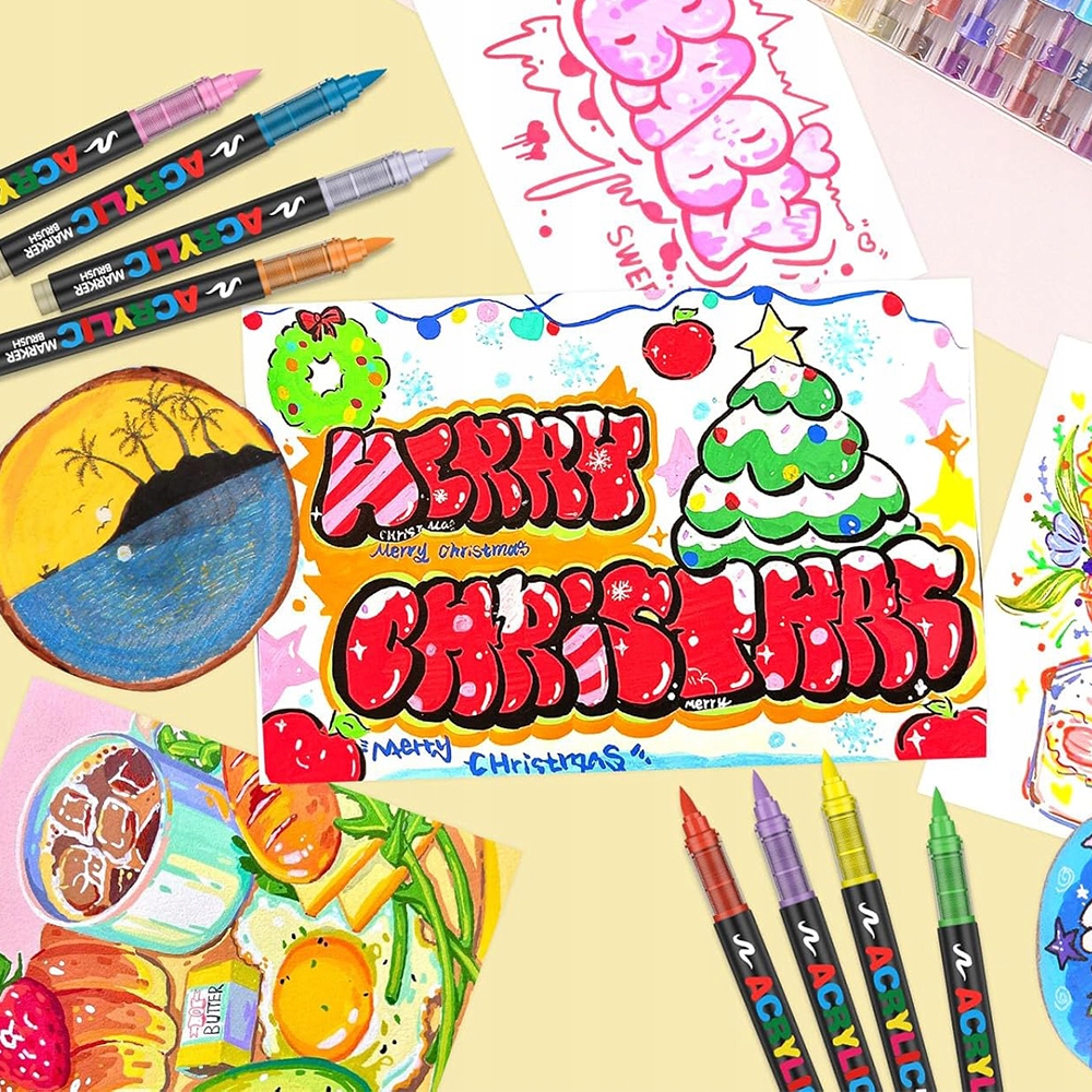 🎨 Набор из 120 акриловых маркеров для камня, водостойких, с кончиком кисточки, быстросохнущих и нетоксичных, идеально подходит для рисования камня, стекла, холста, керамики и дерева.