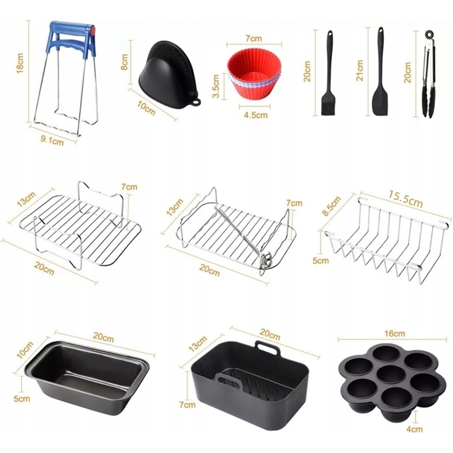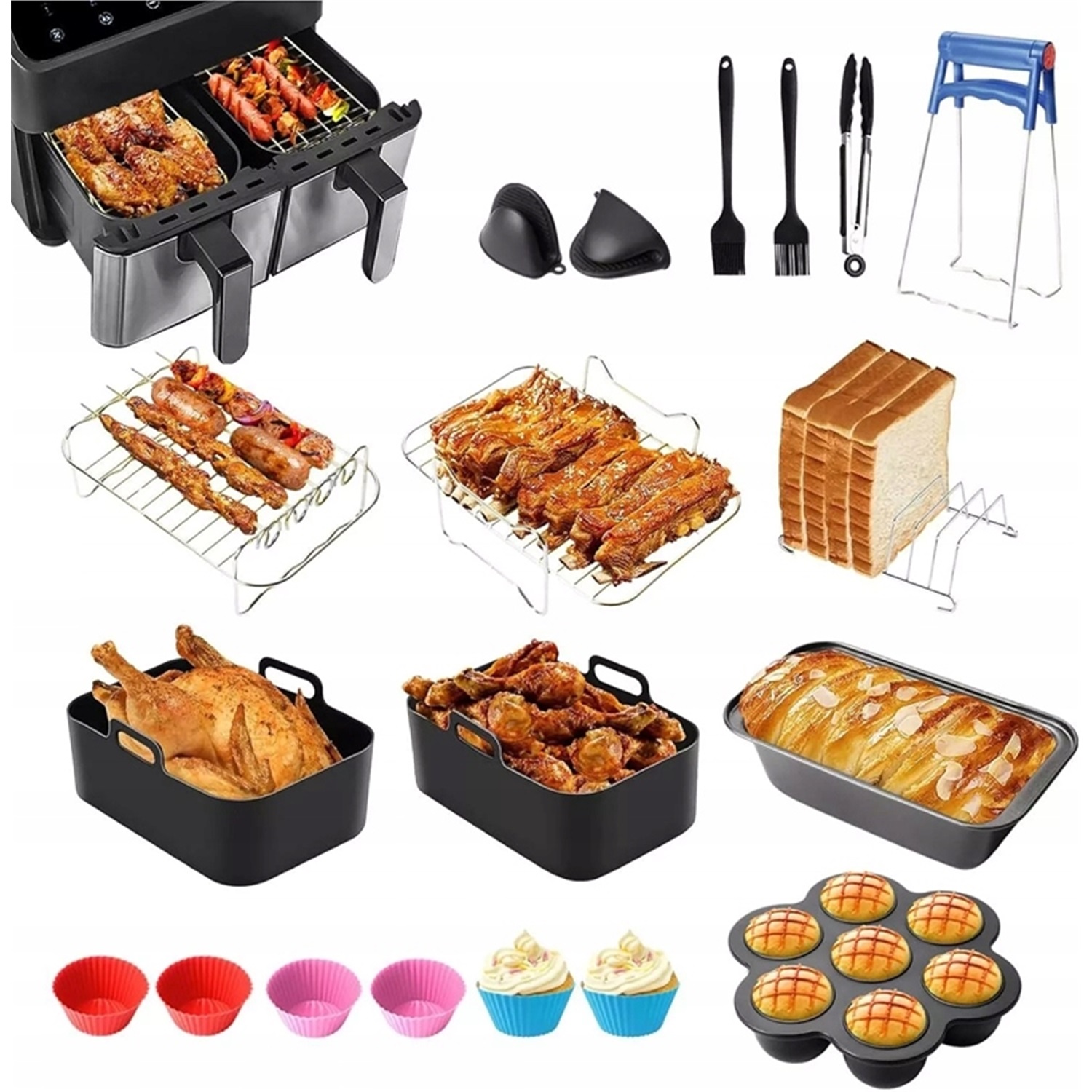 - Полный комплект аксессуаров для аэрофритюрницы подходит для 99% блюд, приготовленных на этом устройстве!