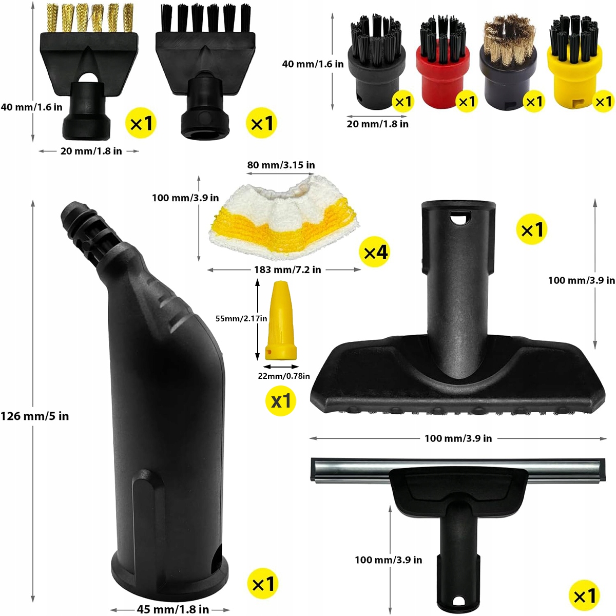 Набор аксессуаров из 14 предметов для пароварок Kärcher SC1-SC5 | Круглые щетки, салфетки из микрофибры, щелевая щетка, ручная насадка | АБС-пластик и нейлон