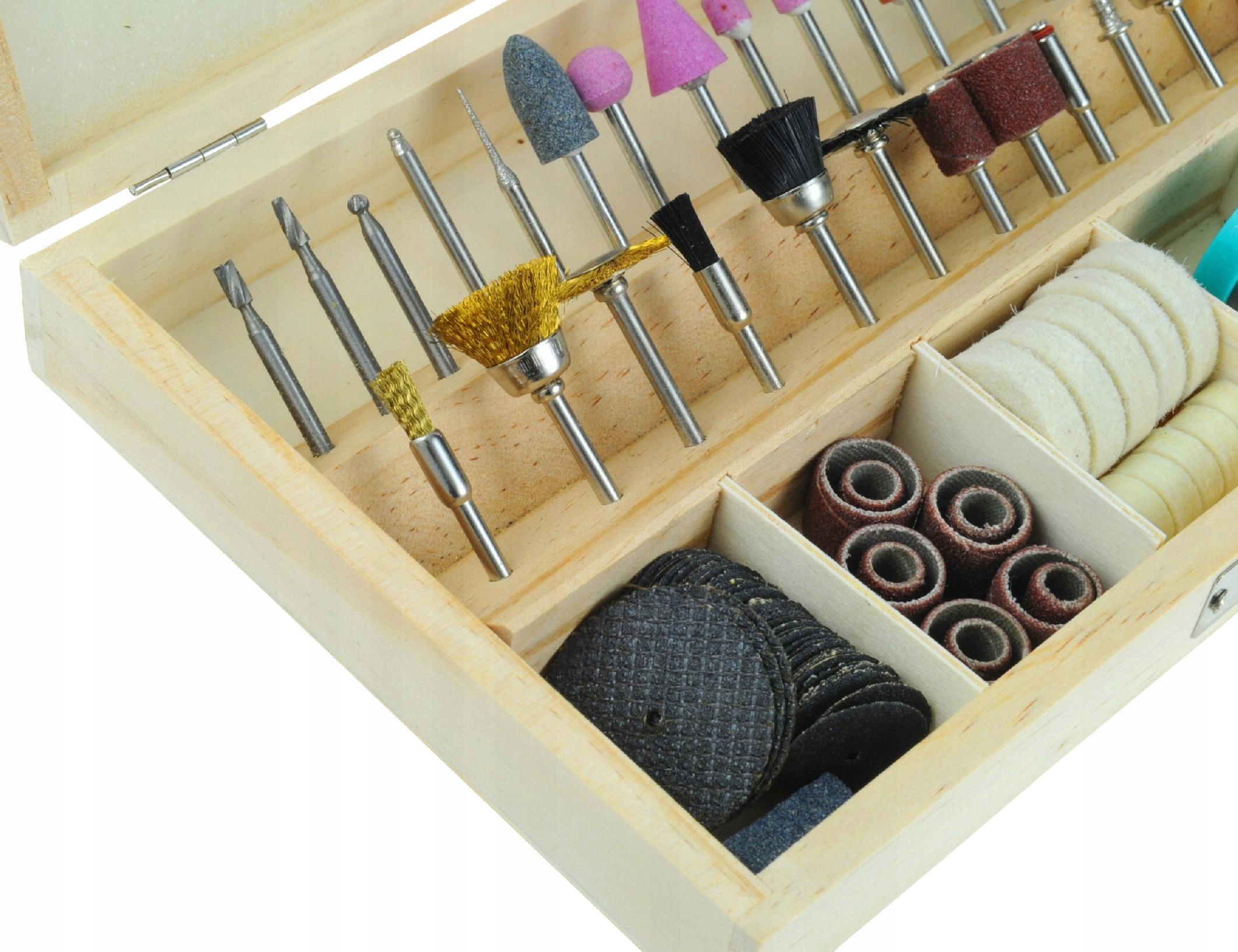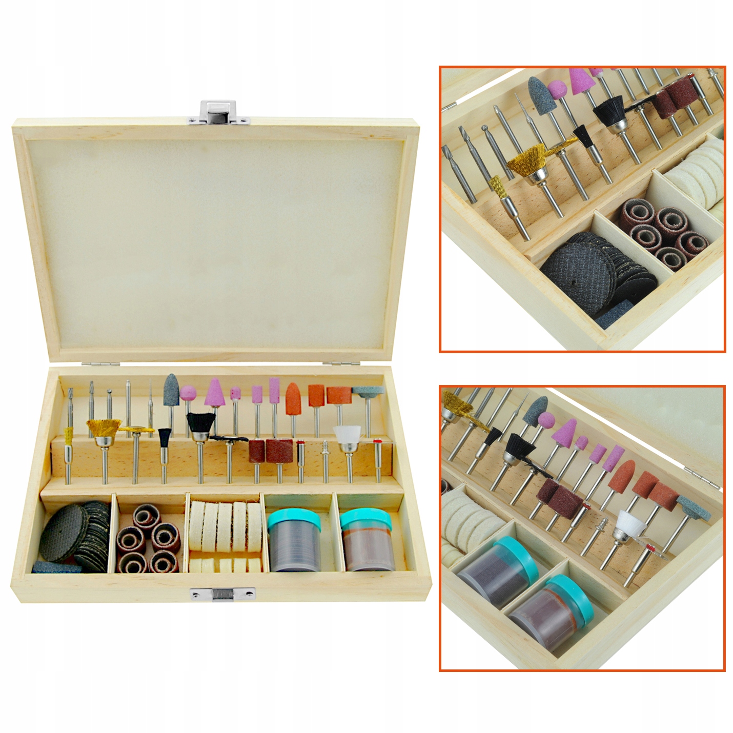 Набор насадок Dremel из ста предметов необходим каждому пользователю мини-шлифовальной машины. Различные виды щеток, дисков, наждачной бумаги, полировального фетра и шлифовальных камней позволят вам полностью использовать потенциал мини-шлифовальной машины. Красивая деревянная шкатулка позволит найти все необходимые советы в одном месте.
