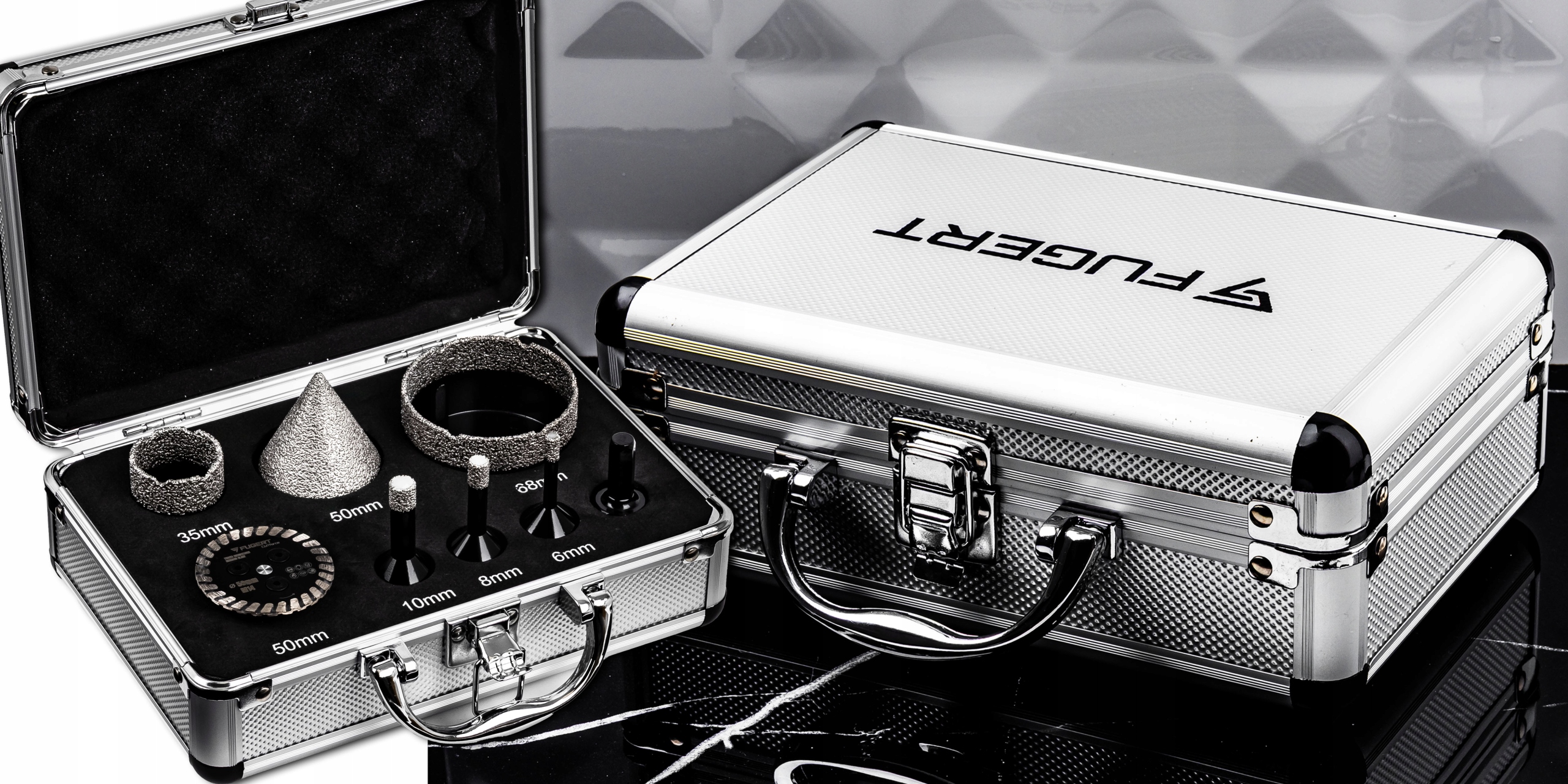 НАБОР АЛМАЗНОЙ КОРОНКИ ДЛЯ ПЛИТКИ 6-68 ММ КОНУС + ДИСК