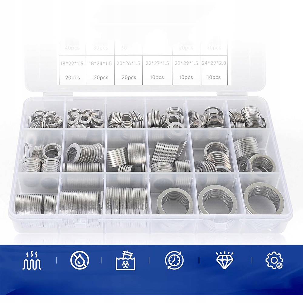 НАБОР АЛЮМИНИЕВЫХ ШАЙБ MIX M6 - M24 (450 шт.) АЛЮМИНИЕВЫЕ ШАЙБЫ