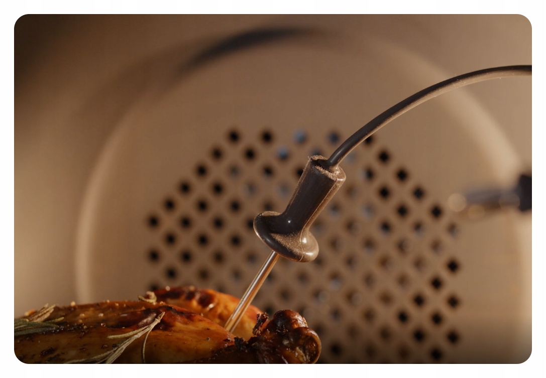 Наверное, вы много раз протыкали или разрезали форму для выпечки, чтобы проверить степень ее пропекания. Благодаря датчику внутренней температуры в этом больше нет необходимости! Все, что вам нужно сделать, это поместить его в форму для запекания и установить на программаторе ту температуру, которую вы хотите достичь внутри. Термометр будет особенно полезен при запекании мяса. Никакого риска подгореть снаружи и недовариться внутри!