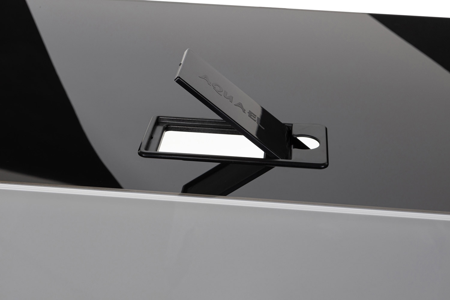Аквариум из набора «Глянец» имеет встроенную крышку и освещение Aquael Leddy Tube Sunny Day&Night 2.0. Световые модули закреплены на специальной раме, поэтому при необходимости доступа внутрь аквариума крышка и ручка поднимаются и размещаются вертикально на задней стенке. Такое решение позволяет направить освещение внутрь аквариума, чтобы все сервисные работы в аквариуме можно было выполнять при полном освещении. Кроме того, крышка аквариума оснащена удобным окном, позволяющим ежедневно кормить рыб, не открывая ее полностью.