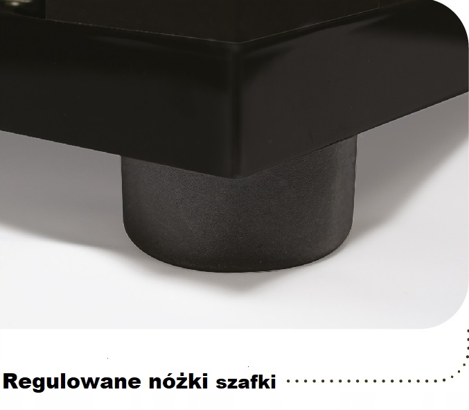 Шкаф изысканного дизайна водонепроницаем, а регулируемые ножки обеспечивают устойчивость конструкции.