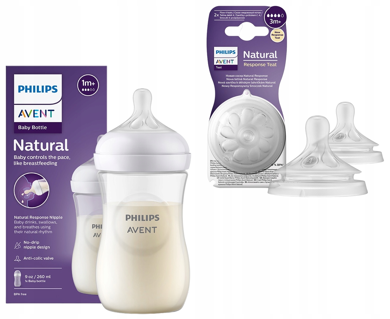 Бутылочка Avent Response совместима с другими продуктами Avent Natural, поэтому молокоотсос, бутылочку и другие элементы можно свободно комбинировать.