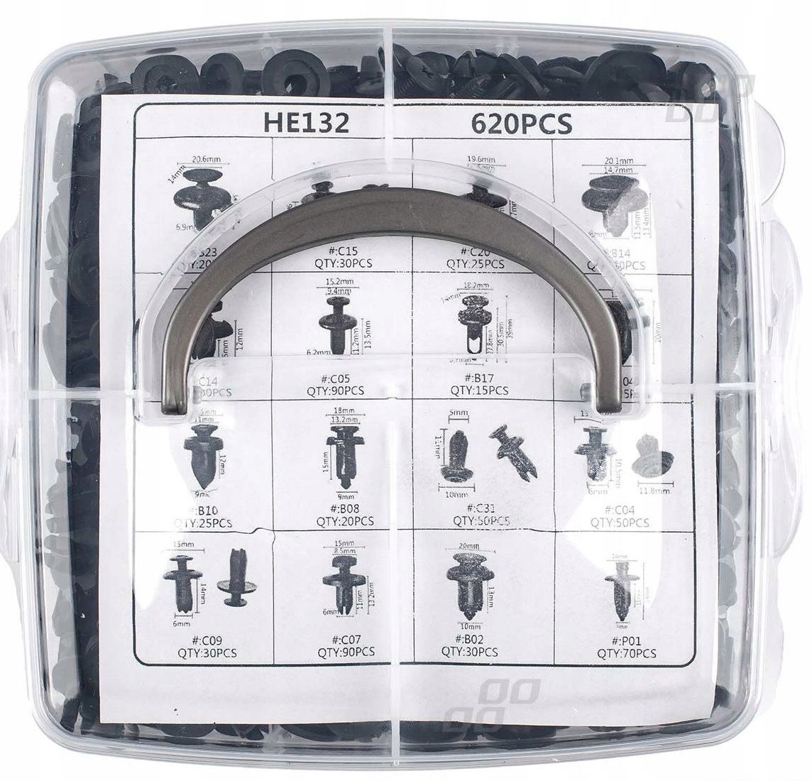 Набор из 620 ЭЛЕМЕНТОВ, в который входят 16 самых популярных размеров зажимов и креплений. p>