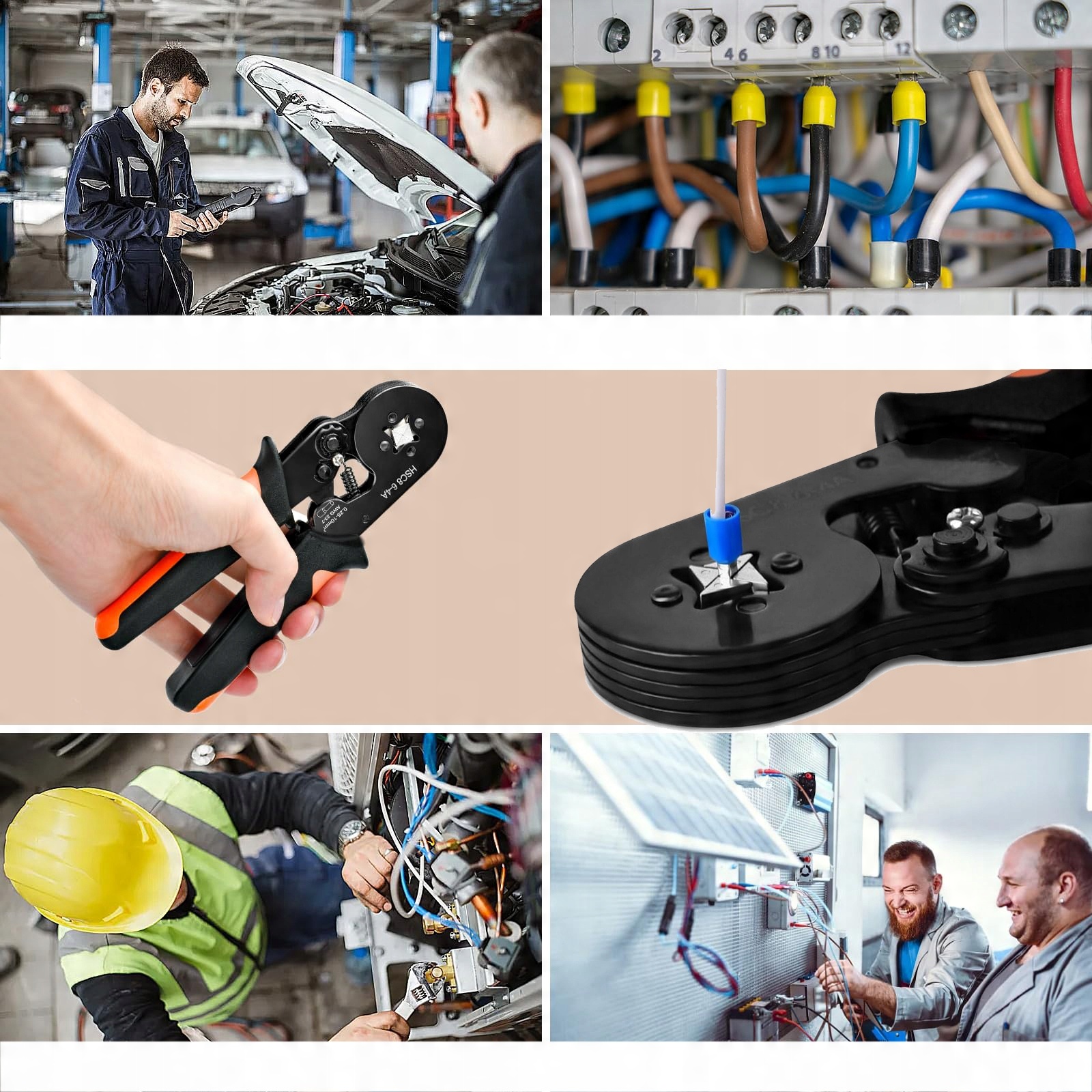 - Набор обжимных клещей для кабельных наконечников имеет 8 различных клемм, всего 1200 наконечники, подходящие для разных размеров, которые можно использовать для кабельных наконечников 0,5–10 мм², проводка тугая, ее нелегко ослабить.