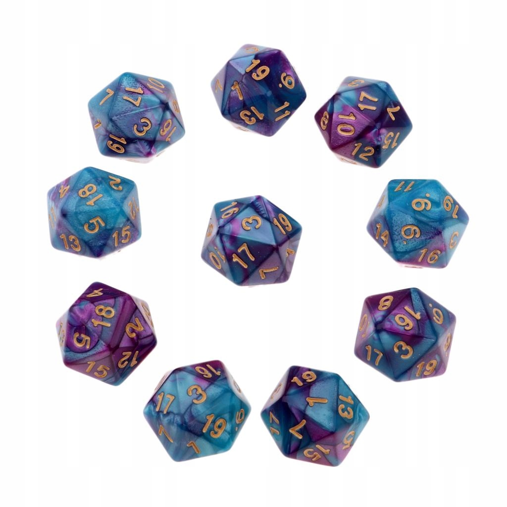 Набор из 10 многогранных кубиков, семейство односторонних кубиков для TRPG, синего, фиолетового цвета -b