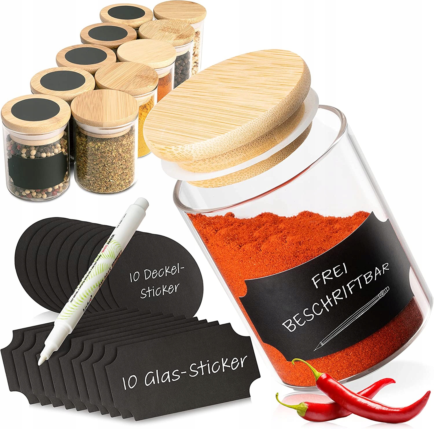 С помощью прилагаемых наклеек для банок для специй вы сможете в будущем помечать все свои банки и крышки. У вас сразу же будет идеальная организация кухни, а также место для хранения всех специй на вашей кухне!