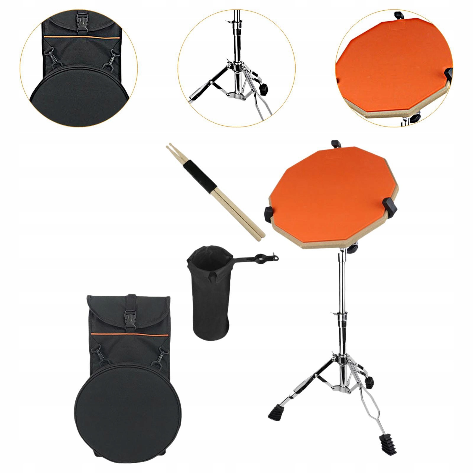 Набор из 12 -дюймовых перкуссионных прокладок с портативными силиконовыми знаками с барабанными палочками для паношки по оранжевому