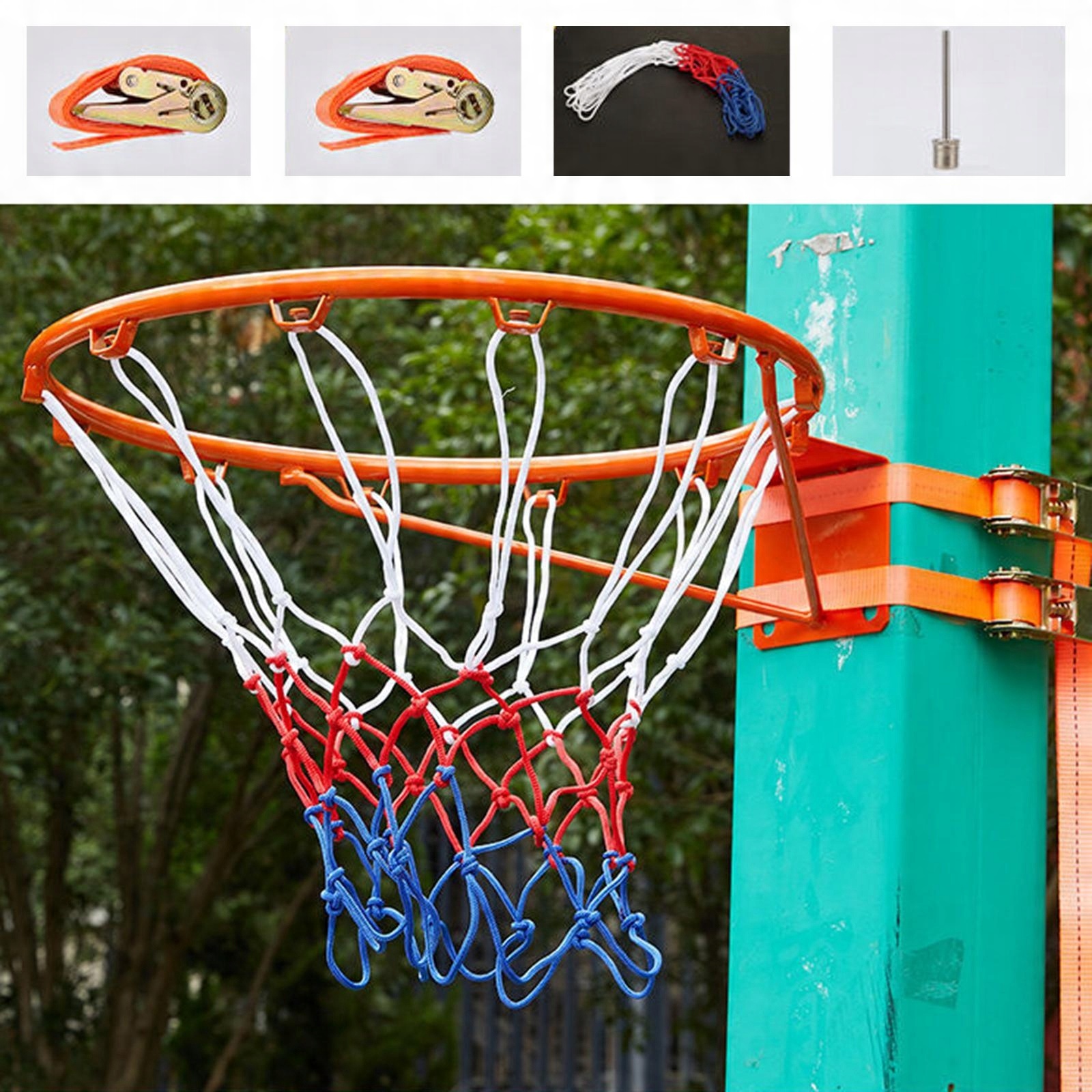 [ВЫСОКОЕ КАЧЕСТВО] Баскетбольное кольцо имеет прочную прочную стальную раму с порошковым покрытием, обеспечивающим большую долговечность, а сетка изготовлена из прочного нейлона, что продлевает срок службы.