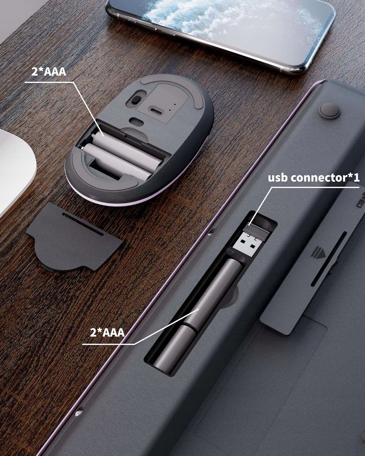 3 регулируемых уровня разрешения: беспроводная мышь имеет три уровня разрешения (1000/1600/2400) для удовлетворения различных потребностей в чувствительности. Набор клавиатуры и мыши работает с ПК, ноутбуками, Windows 2000, XP, Vista, Win 7, Win 8 и Win 10. Набор питается от 2 батареек типа ААА [Батарейки в комплект не входят]