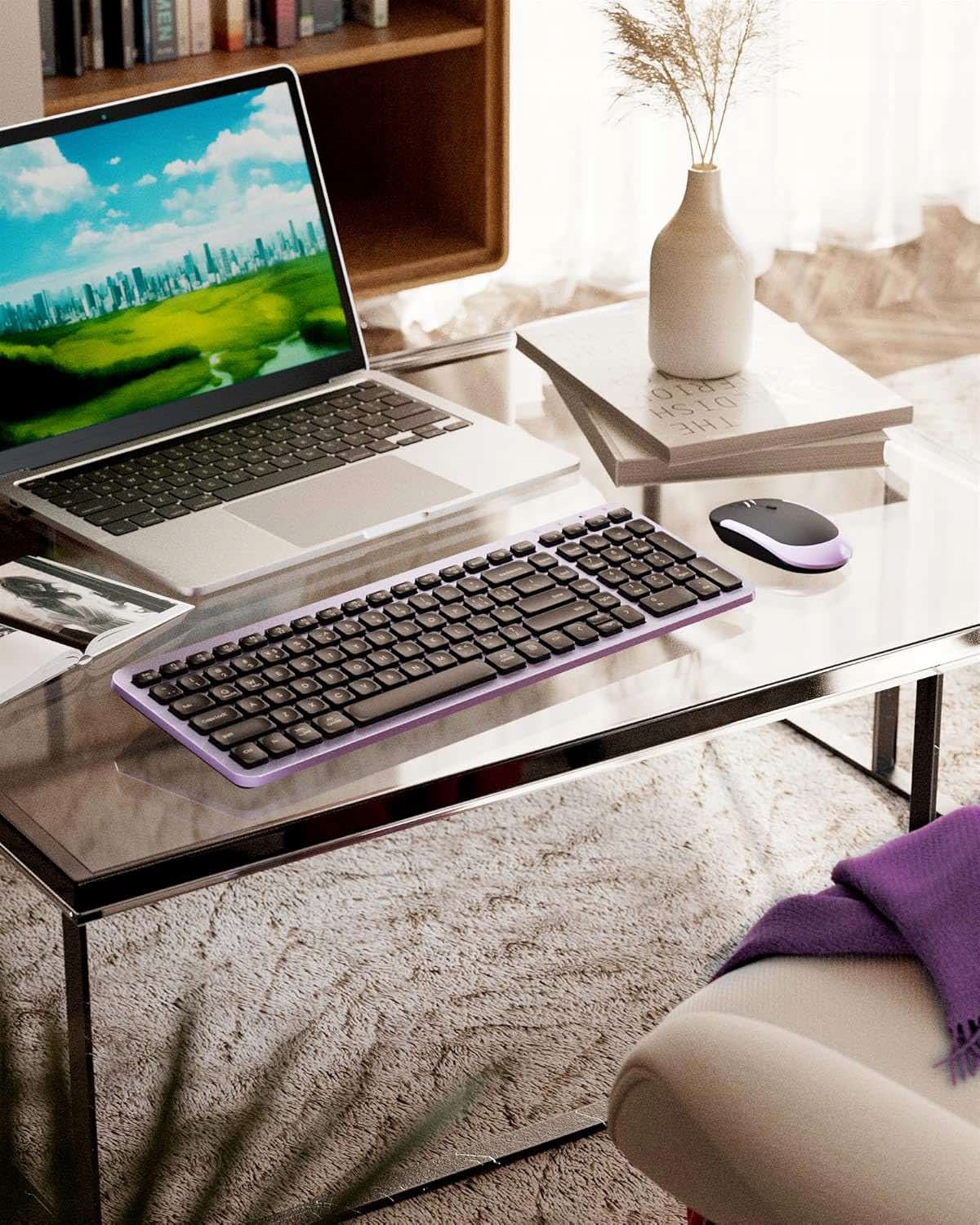 МОДНАЯ УЛЬТРАТОНКАЯ КЛАВИАТУРА: Беспроводная клавиатура с ультра-тонкой клавиатурой. тонкий дизайн толщиной 0,7 дюйма и компактный дизайн, который экономит место и упрощает переноску, идеально подходит для небольшого стола или для использования в дороге. 12 мультимедийных клавиш обеспечивают удобство для развлечений и работы.