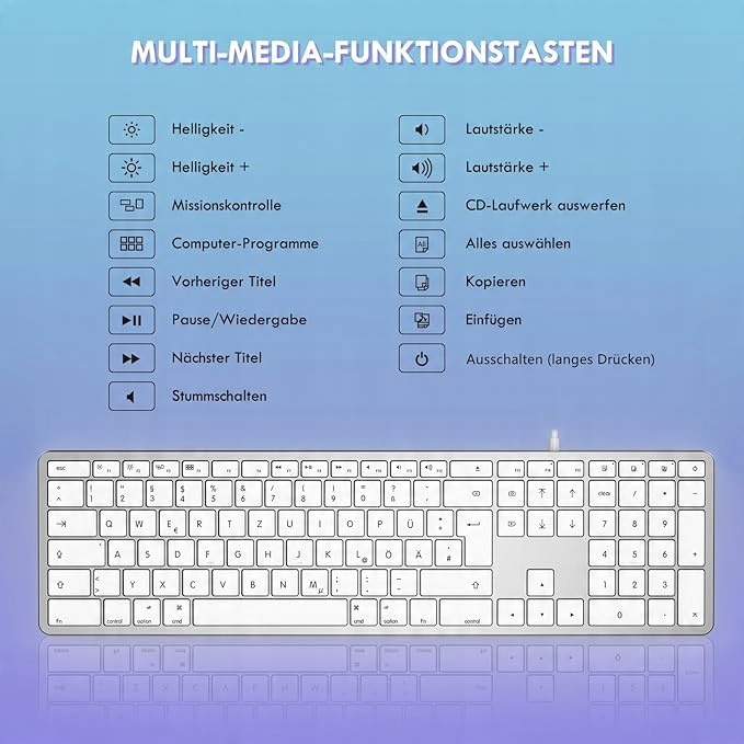 Проводная клавиатура Mac , с кабелем и разъемом типа C/USB, клавиатура iMac QWERTZ на немецком языке, только для Mac OS/iOS, серебристо-белый цвет.