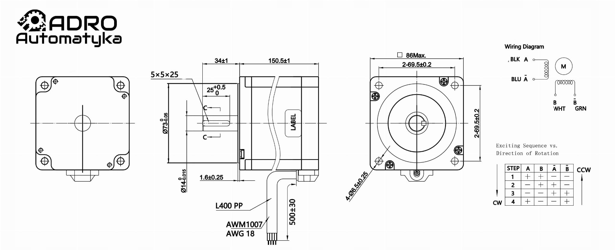 1x шаговый двигатель 86BYG-150-6A