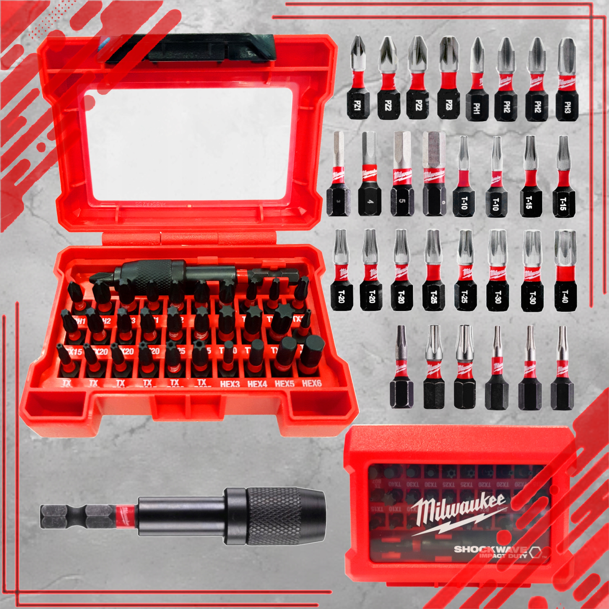 НАБІР БІТ IMPACT DURABLE TORX PZ PH SHOCKWAVE БІТИ РУЧКА 32 ШТ.