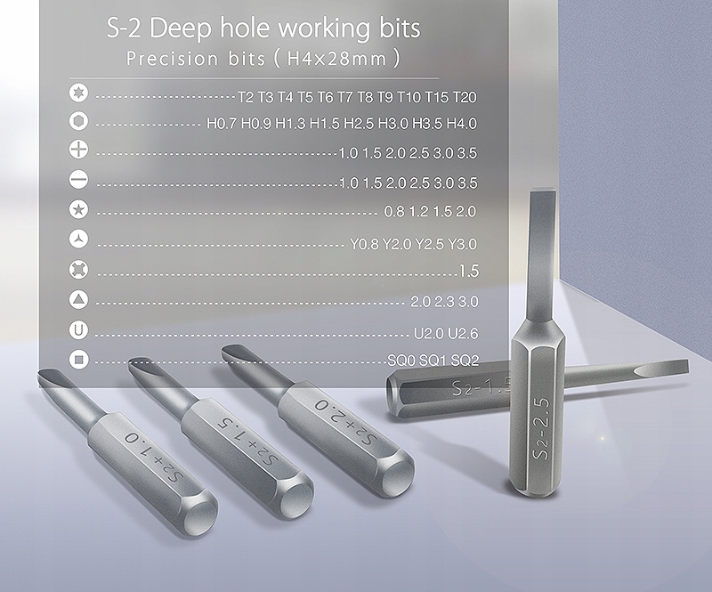 Included in the set of 48 popular bits (tips) with a length of 28mm: