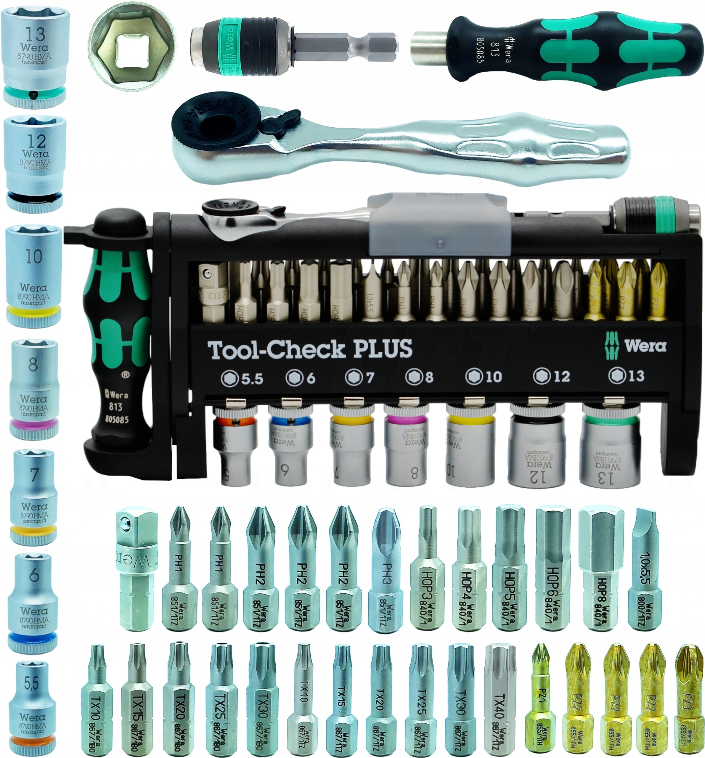 Набор трещотки, головки, биты, ручка 1/4" TOL-CHECK PLUS WERA