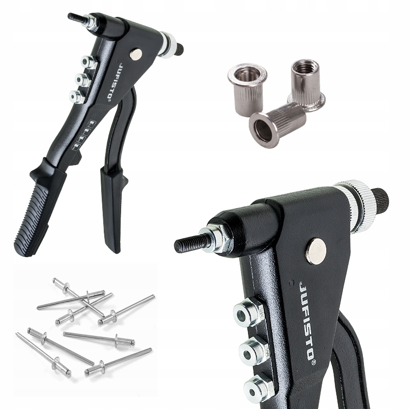 адаптировано к Al/ST заклепок 2.4-3.0-3.2-4.0-4.8-5,0 и для Nitonachats M3-M4-M5-M6. Легкая и быстрая замена оправки. Челюсти из стали CR-V. 270 мм длина заклепки. Включает заклепки и нитонаклы. Nitownica и аксессуары в практическом и функциональном чемодане. Материал: Корпус: алюминиевое литье, рука: хромированная ванада -сталь, резиновая не -славитная ручка; 40 цилиндрических заклепков; 4 заменяемые головы