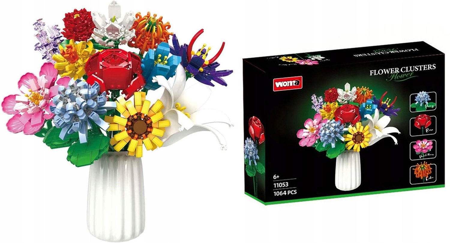 - 💐 Этот уникальный набор содержит целых 1064 элемента, благодаря которым вы можете собрать 12 разных цветов, таких как роза, лилия, орхидея, тюльпан, ромашка и многие другие.