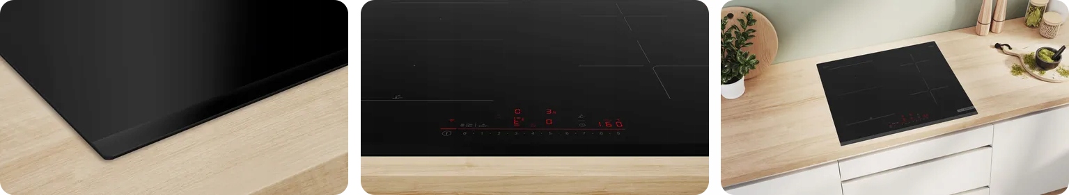 - Размеры и мощность зон нагрева:2 поля (19 х 21 см): 2,5 кВт (с PowerBoost до 3,7 кВт); 1 полюс (диаметр 14,5 см): 1,6 кВт (с PowerBoost до 2,2 кВт); 1 зона (диаметр 18 см): 2,0 кВт (с PowerBoost до 3,1 кВт)
