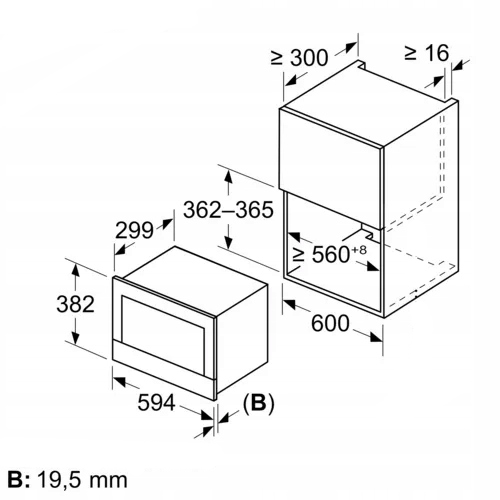 - Размеры ниши (ВхШхГ): 362мм - 382мм х 560мм - 568мм х 300 мм