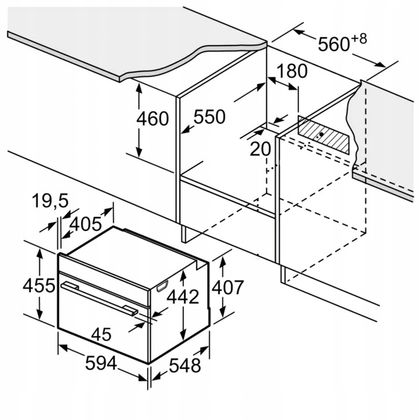 - Размеры ниши (ВxШxГ): 450 мм - 455 мм x 560 мм - 568 мм x 550 мм