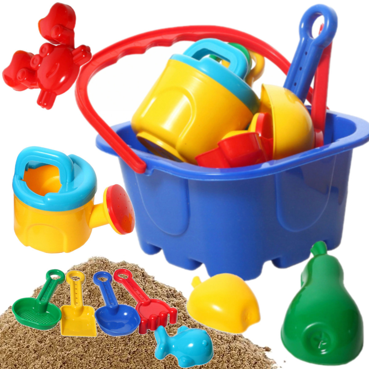 10-элементная песочница Set- Большое ведро, поливная банка и аксессуары для строительства замков! h1>