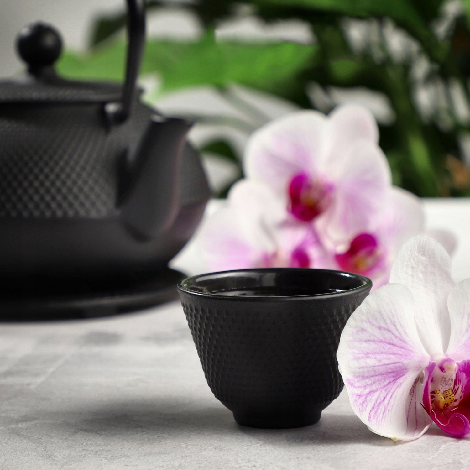 чугунный чайник с чашкой и подставкой. Чугунный чайник профессионально выполнен в восточном стиле, символизирующем силу и красоту. Благодаря своему неподвластному времени привлекательному силуэту чайник идеально вписывается в любой стиль интерьера. Он неизбежно привлечет внимание гостей, а также отлично подойдет в качестве подарка.