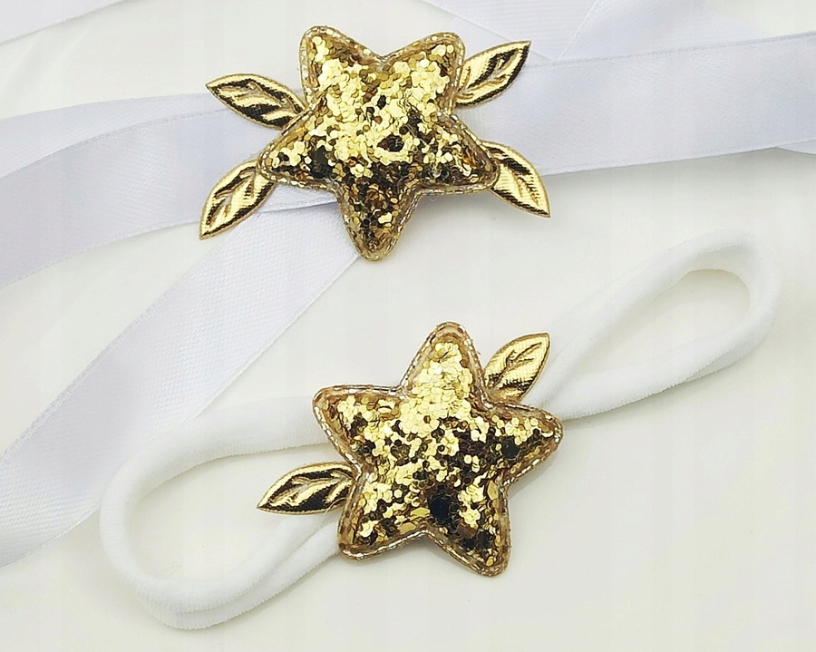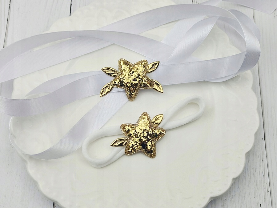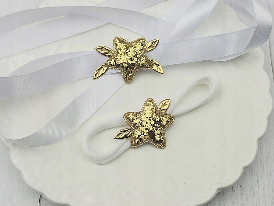Ненапорная повязка на головубелого цвета, украшенная золотой звездой и листьями.