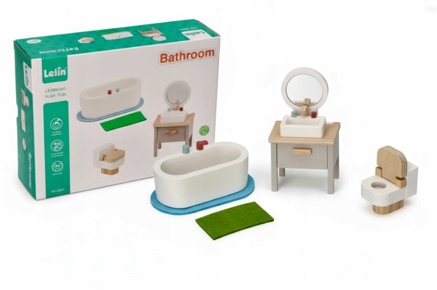 КОМПЛЕКТ ДЕРЕВЯННОЙ МЕБЕЛИ ДЛЯ ВАННОЙ КОМНАТЫ КУКОЛЬНОГО ДОМИКА ДЕРЕВЯННАЯ МЕБЕЛЬ