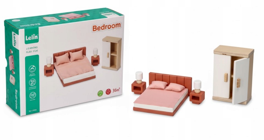 КОМПЛЕКТ ДЕРЕВЯННОЙ МЕБЕЛИ ДЛЯ СПАЛЬНИ КУКОЛЬНОГО ДОМИКА ДЕРЕВЯННАЯ МЕБЕЛЬ