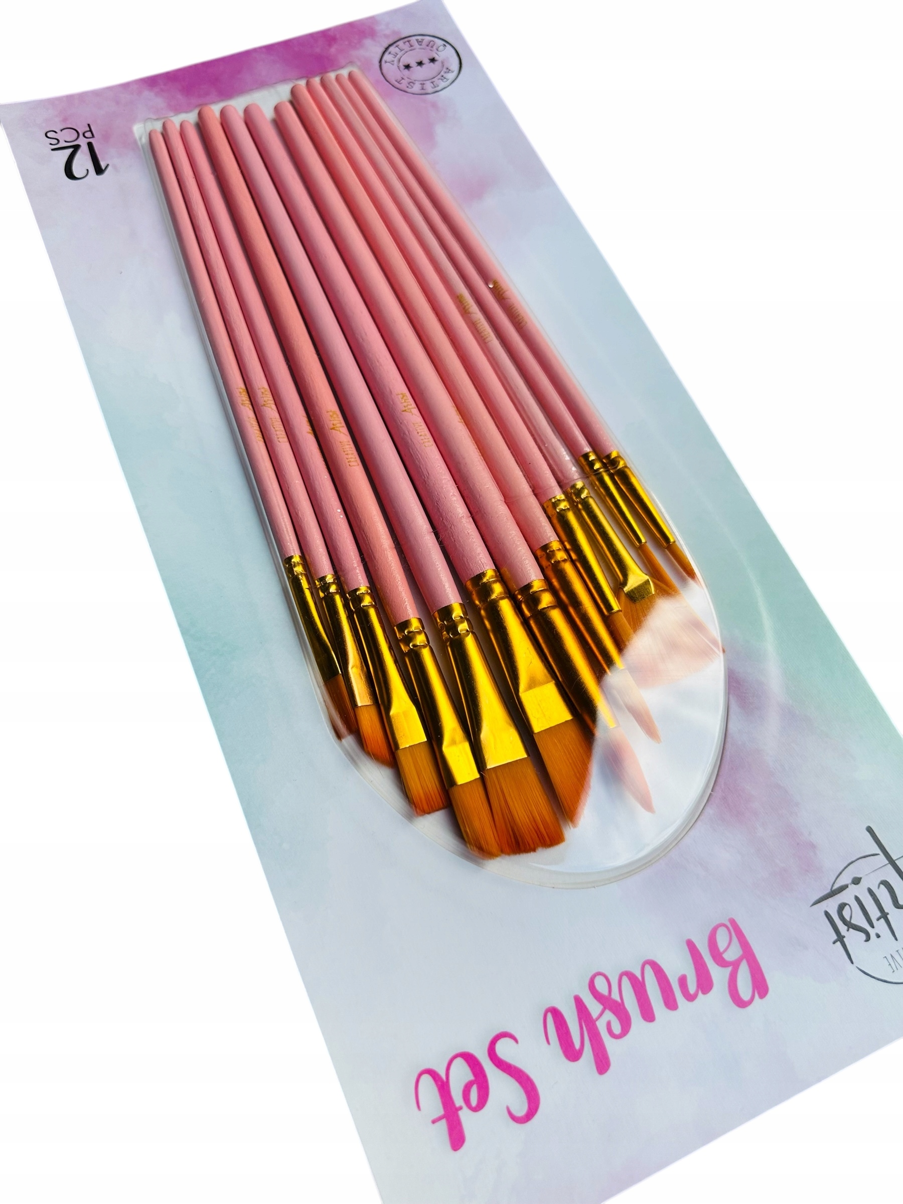 НАБОР ДЕРЕВЯННЫХ КИСТЕЙ, 12 ШТ. РОЗОВЫЕ ЩЕТКИ ПРЕМИУМ