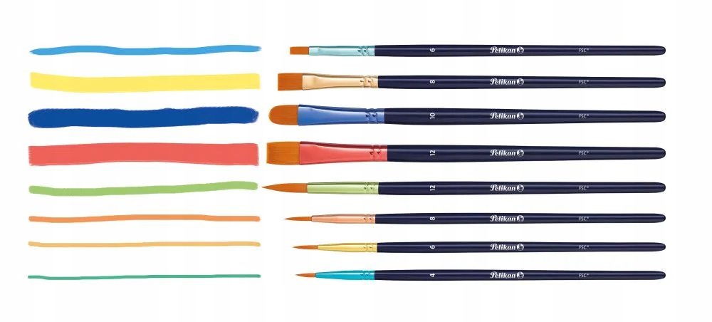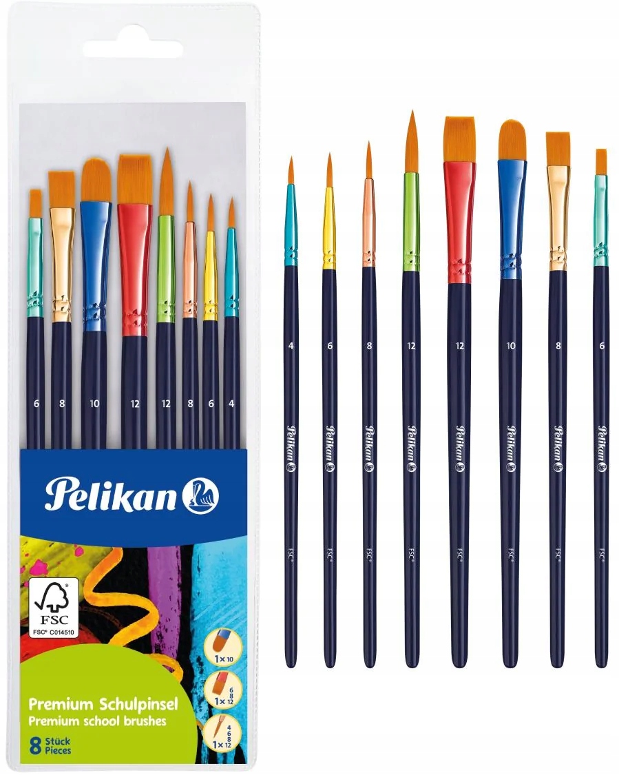 Набор деревянных школьных кистей Pelikan, 8 предметов разных размеров