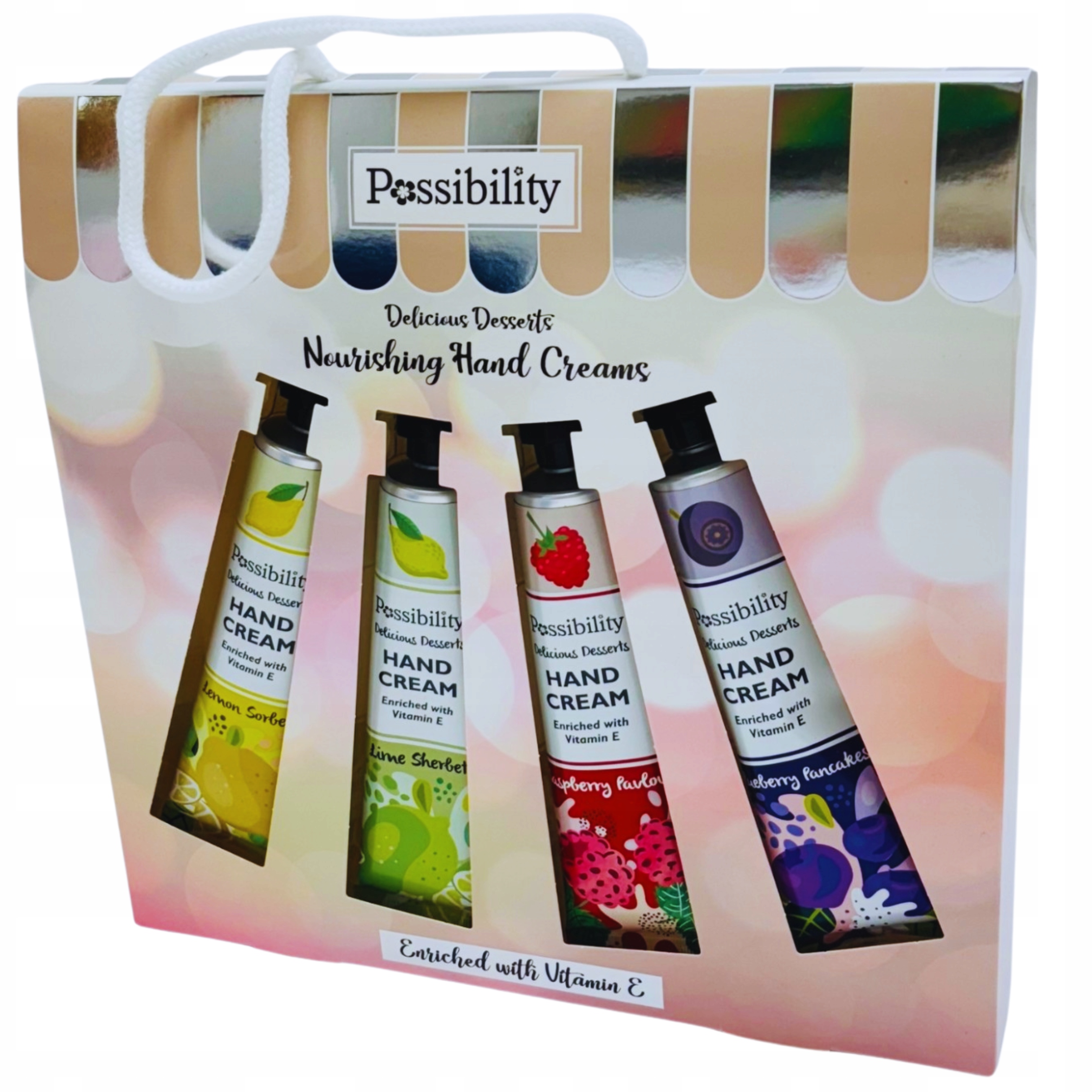 - Кремовый лимон (60 мл) - свежий и освежающий запах лимона, который дает энергию кожи, идеально подходит для каждого дня B> Кремовая лайм для рук (60 мл) - исключительно четкая нота лайма, которая завершает вам руки экзотическим ароматом и оставляет их шелковистыми. 60 мл). /b> - теплая, фруктовая нота ягод, идеально подходит для любителей сладких, нежных ароматов > Каждый из кремов имеет легкую консистенцию, которая быстро поглощается, интенсивно увлажняет, сглаживает ваши руки и укрепляет ногти. Идеальный набор для подарка или в качестве уникального удовольствия для вас - введите немного фруктовых роскошных для ежедневного ухода!